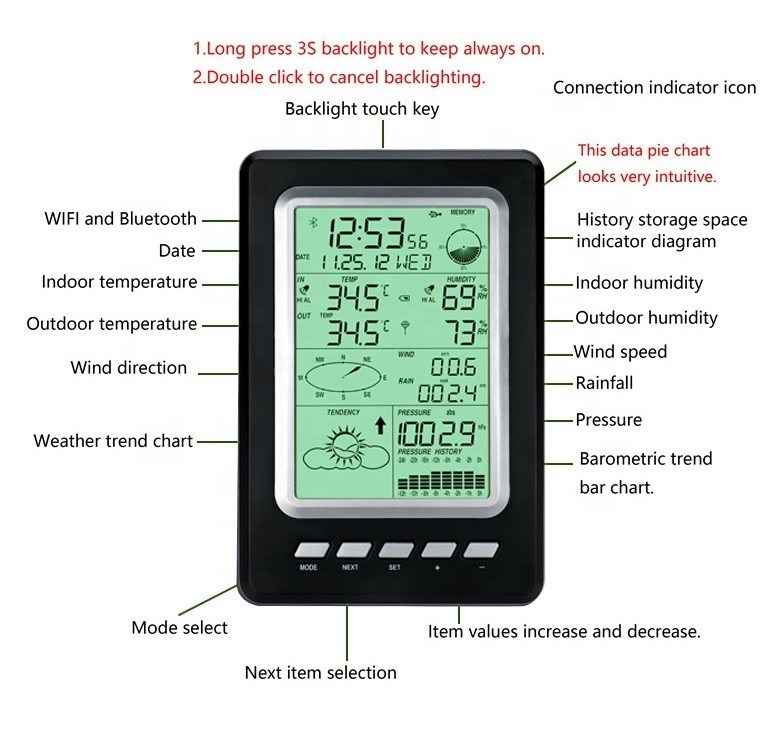 ভেরান্টা এর অন্তর্নির্মিত বৃষ্টি বিরোধী এবং UV বিরোধী জারা,বাতাসের তাপমাত্রা পরিমাপ, আর্দ্রতা